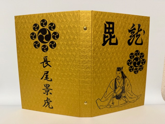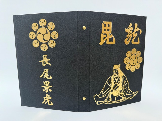 長尾景虎 御城印帳は、戦国時代の名将である長尾景虎の偉大な歴史を手元に感じながら旅の思い出を楽しむことができる特別なアイテムです。この印帳を使って、貴重な旅の記録をしっかりと保管し、あなた自身の物語を刻んでみませんか? 表紙には堂々とした長尾家の肖像画が美しくデザインされ、艶のある黒のクロスをあしらった魅力的な仕上がりです。裏面にも歴史を感じさせるシンボルが施されており、所有する喜びを一層引き立てる逸品に仕上がっています。日常生活でも自信を持ってお使いいただけること間違いありません。 ポケットが20枚搭載されており、表裏で最大40枚の御城印を収納可能です。ポケットサイズはB6サイズまで対応しているため、大きめの御城印も安心して収められます。 サイズ 縦 195㎜ 横 130㎜ 背幅 20㎜ ポケット 縦 185㎜ 横125㎜ *写真の御城印はサンプルです。