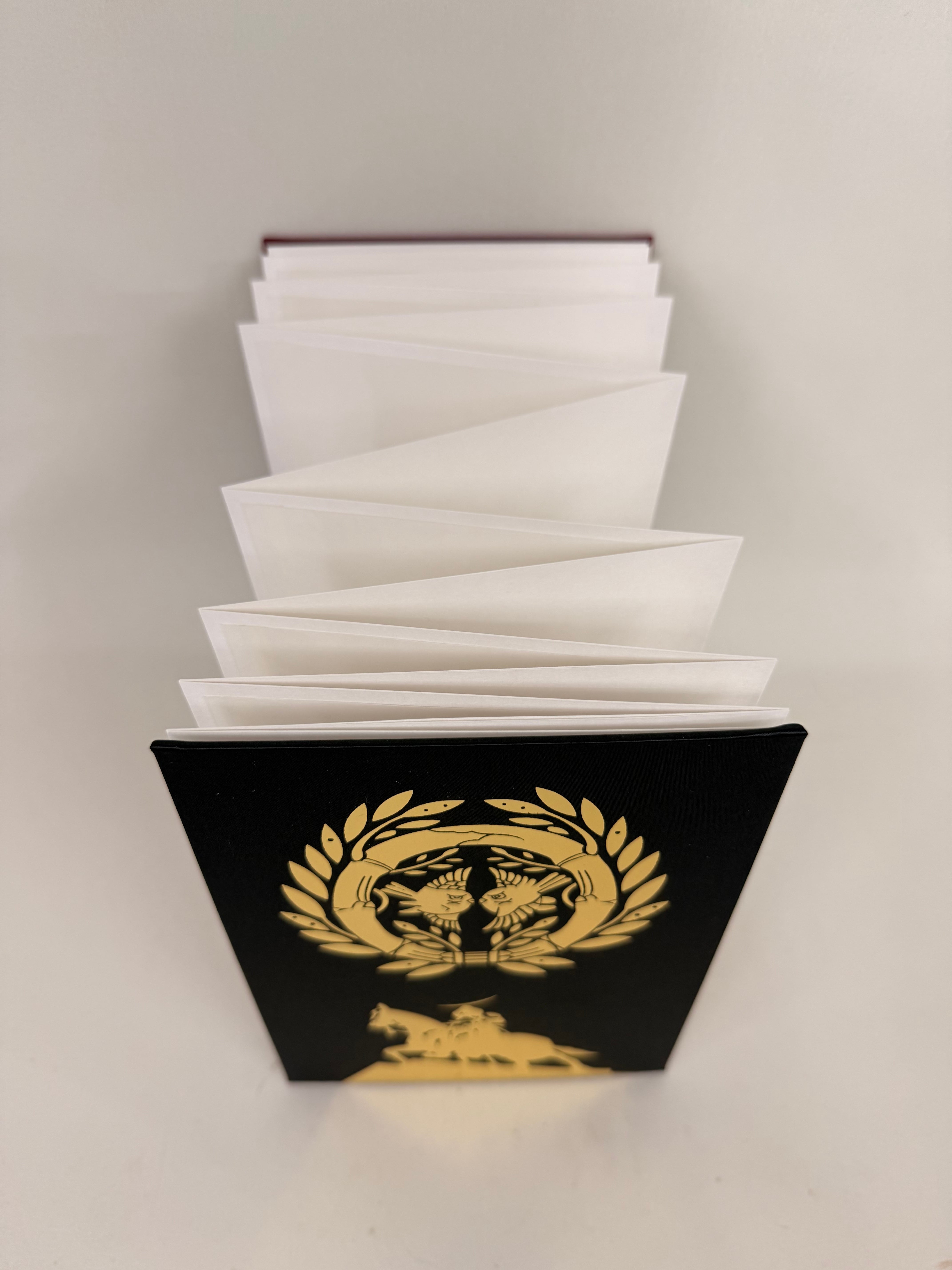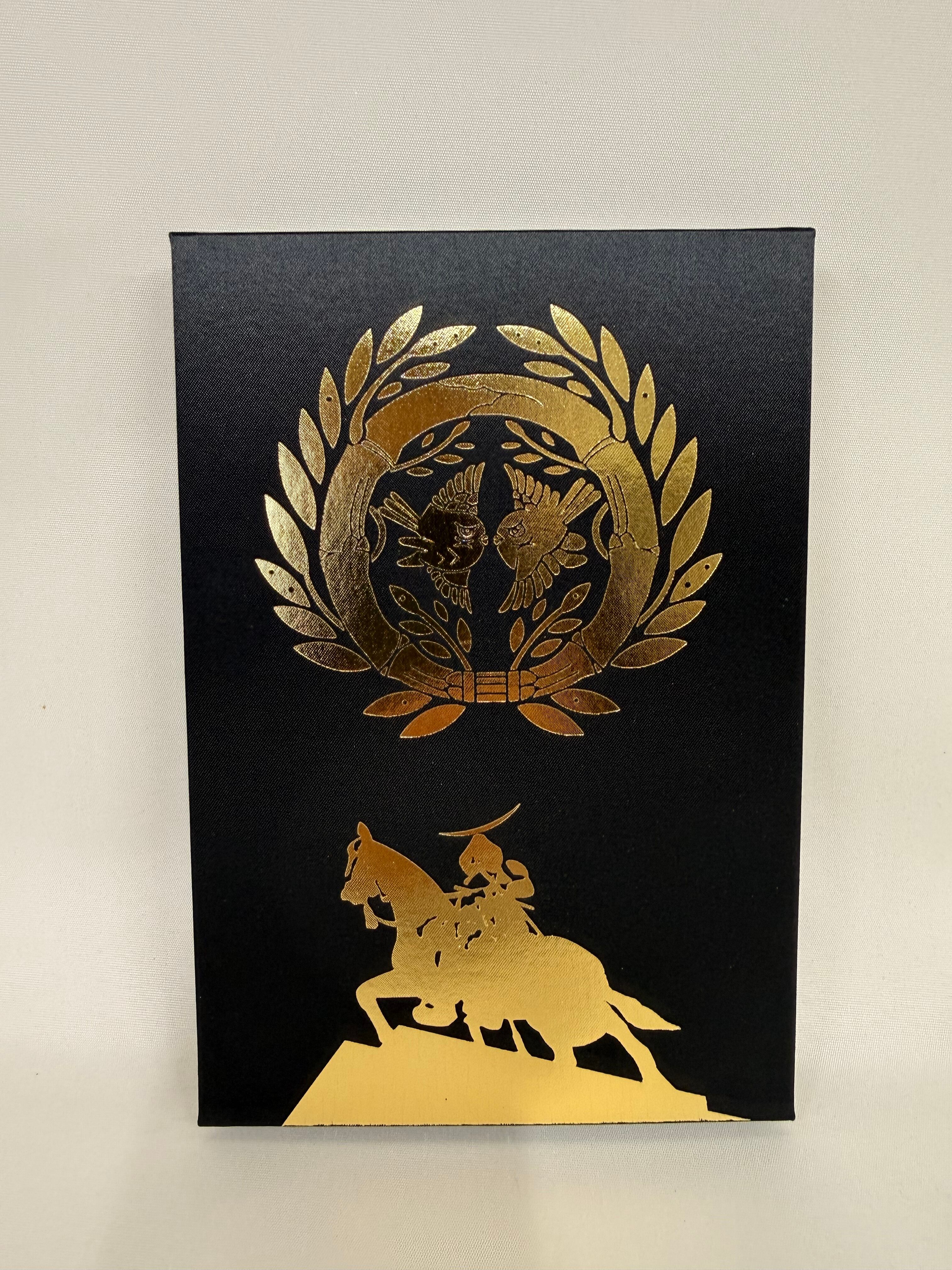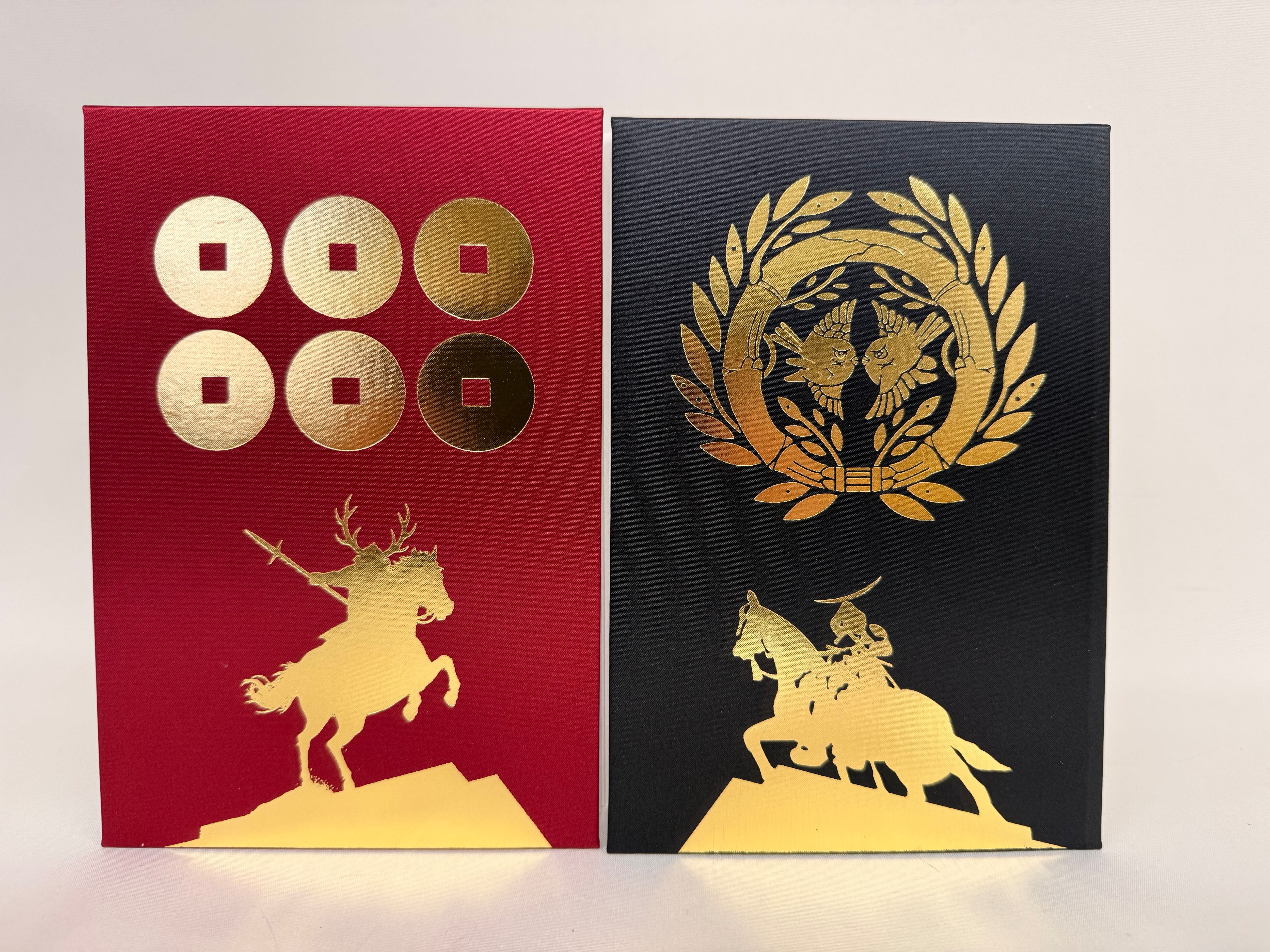表紙には伊達家と真田家の美しい家紋が繊細にあしらわれ、それぞれ黒と赤の艶のあるクロスを使用した高級感溢れるデザインが魅力です。裏面にも、歴史的シンボルが施されており、所有する喜びを一層引き立てます。日常生活でも自信を持ってお使いいただける逸品です。