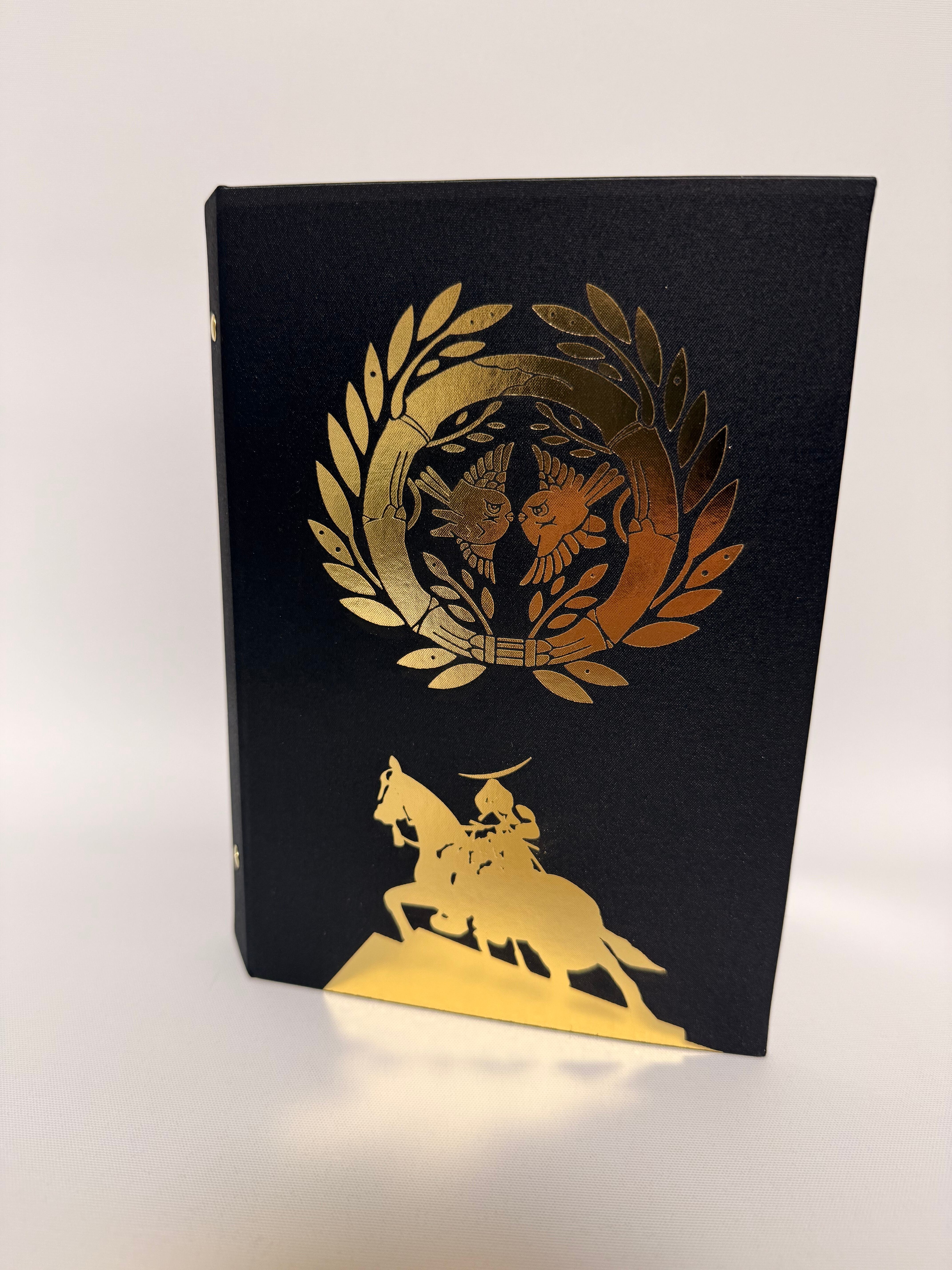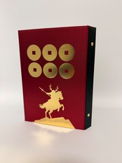表紙には真田家と伊達家の肖像画が美しくデザインされており、艶のある黒と赤をそれぞれ施された仕上がりが魅力的です。裏面には、戦国時代を象徴する意匠が施されており、所有する喜びをさらに引き立てる逸品となっています。日常生活でも自信を持ってお使いいただけるアイテムです。