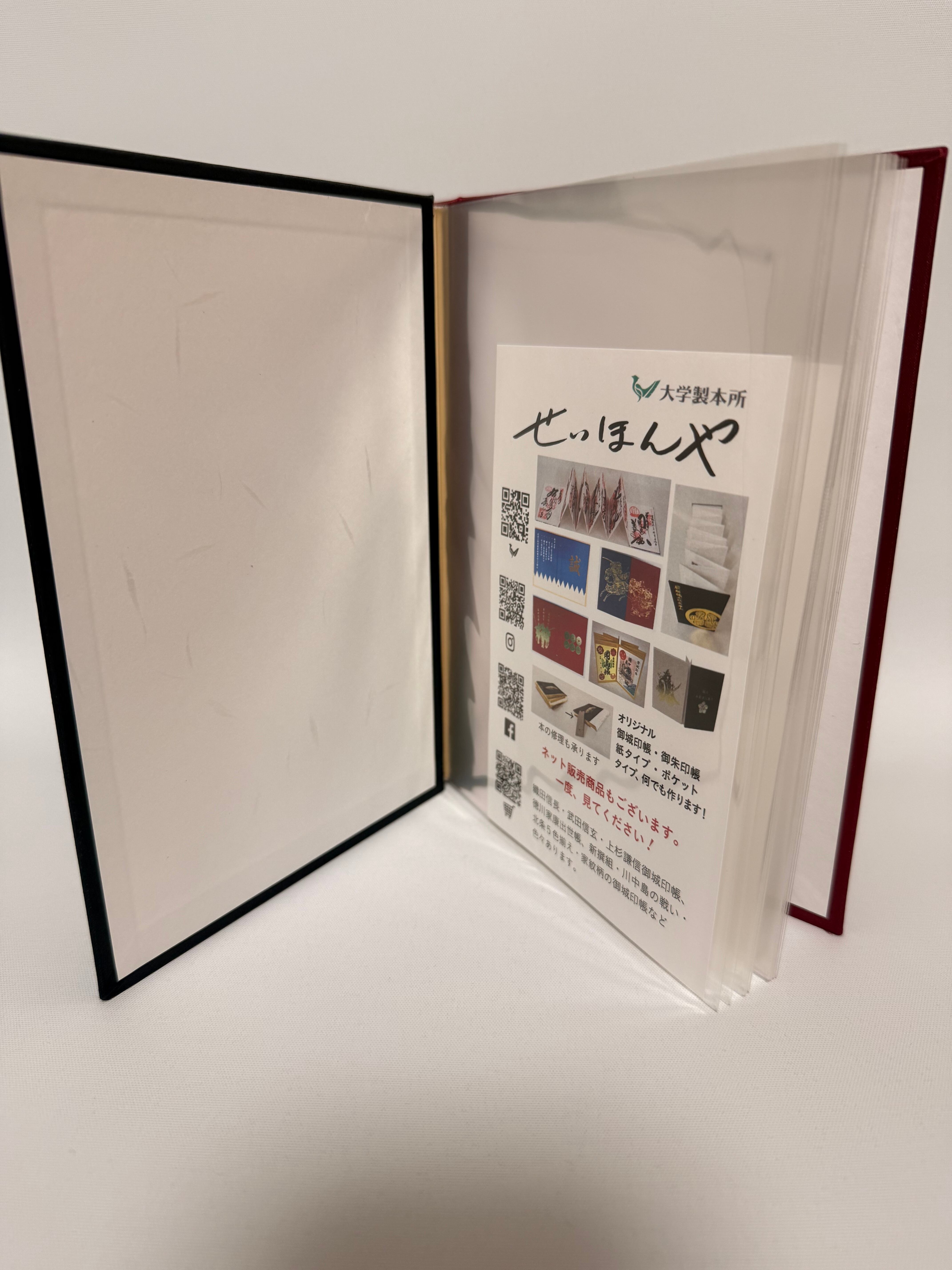 ポケットが20枚搭載されており、表裏で最大40枚の御城印を収納できます。ポケットサイズはB6サイズまで対応しているため、大きめの御城印も安心して収められます。
